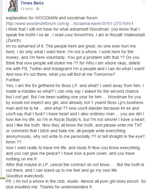 Timea Bella escorts in Switzerland.